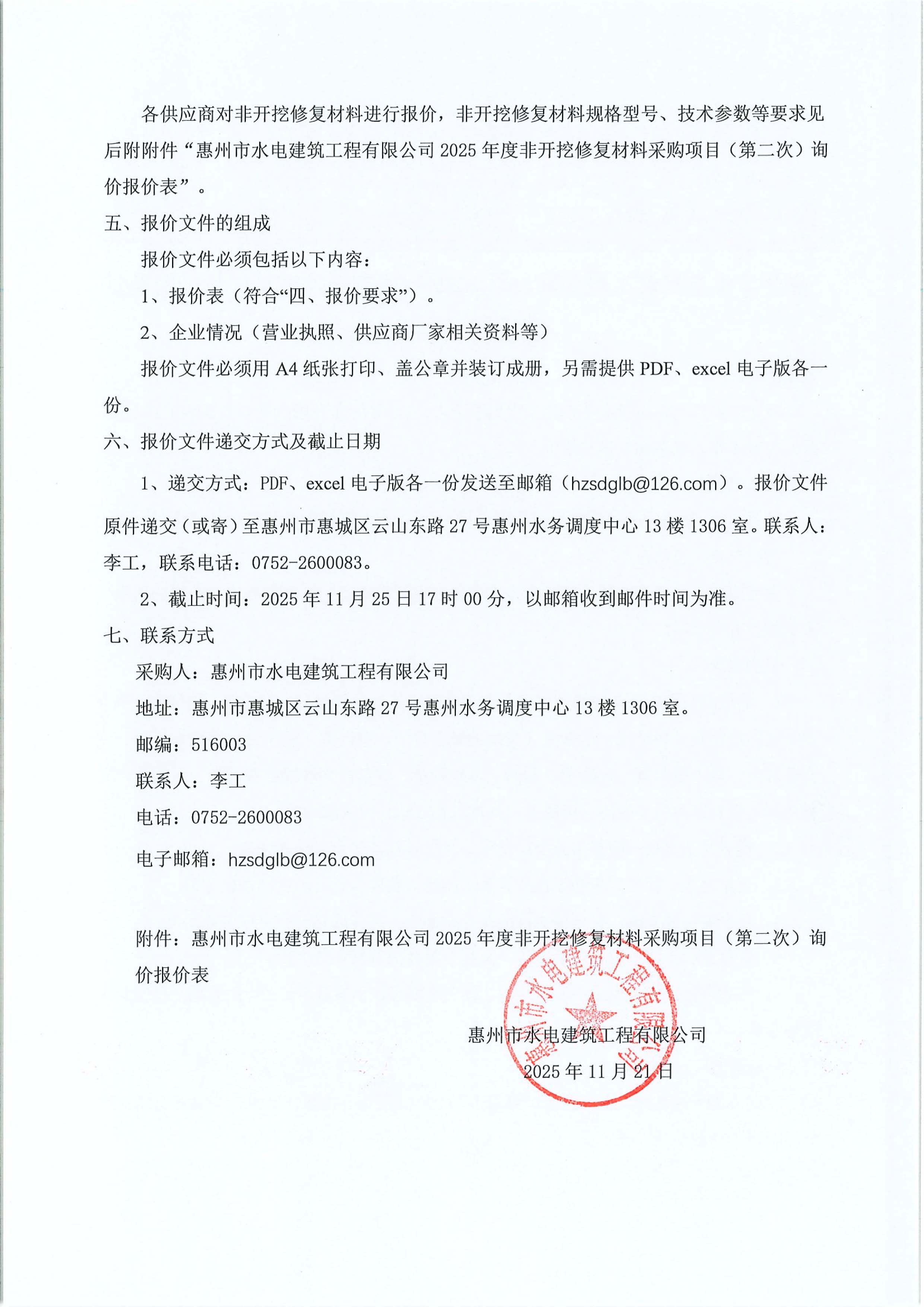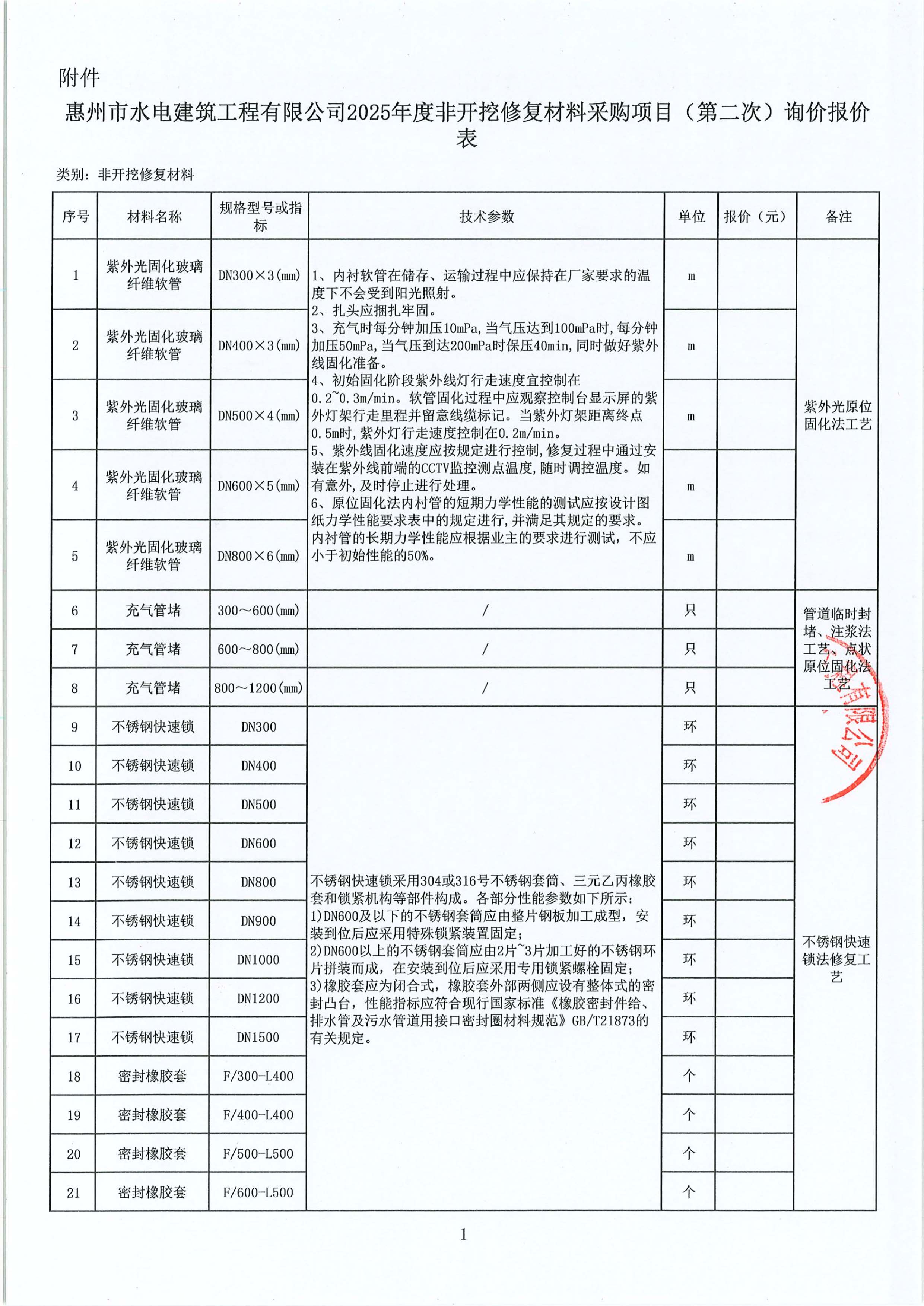 惠州市水電建筑工程有限公司2025年度非開挖修復(fù)材料采購項(xiàng)目(第二次)詢價(jià)公告附件: